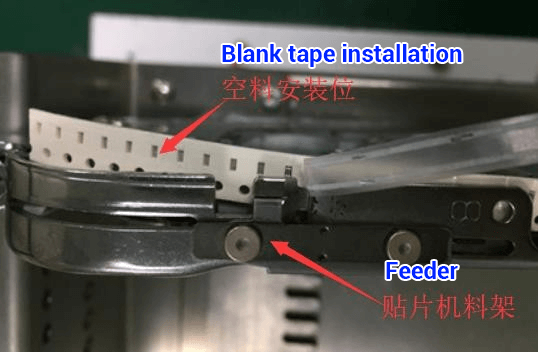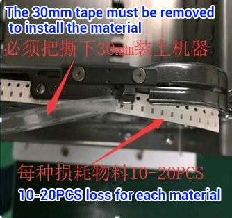 | Figure 1: Each material on the placement machine needs to be removed 10-20PCS tape to reserve enough blank length. | Figure 2: The length of the blank tape has been reserved. | Figure 3: Materials installation. | |||||||||